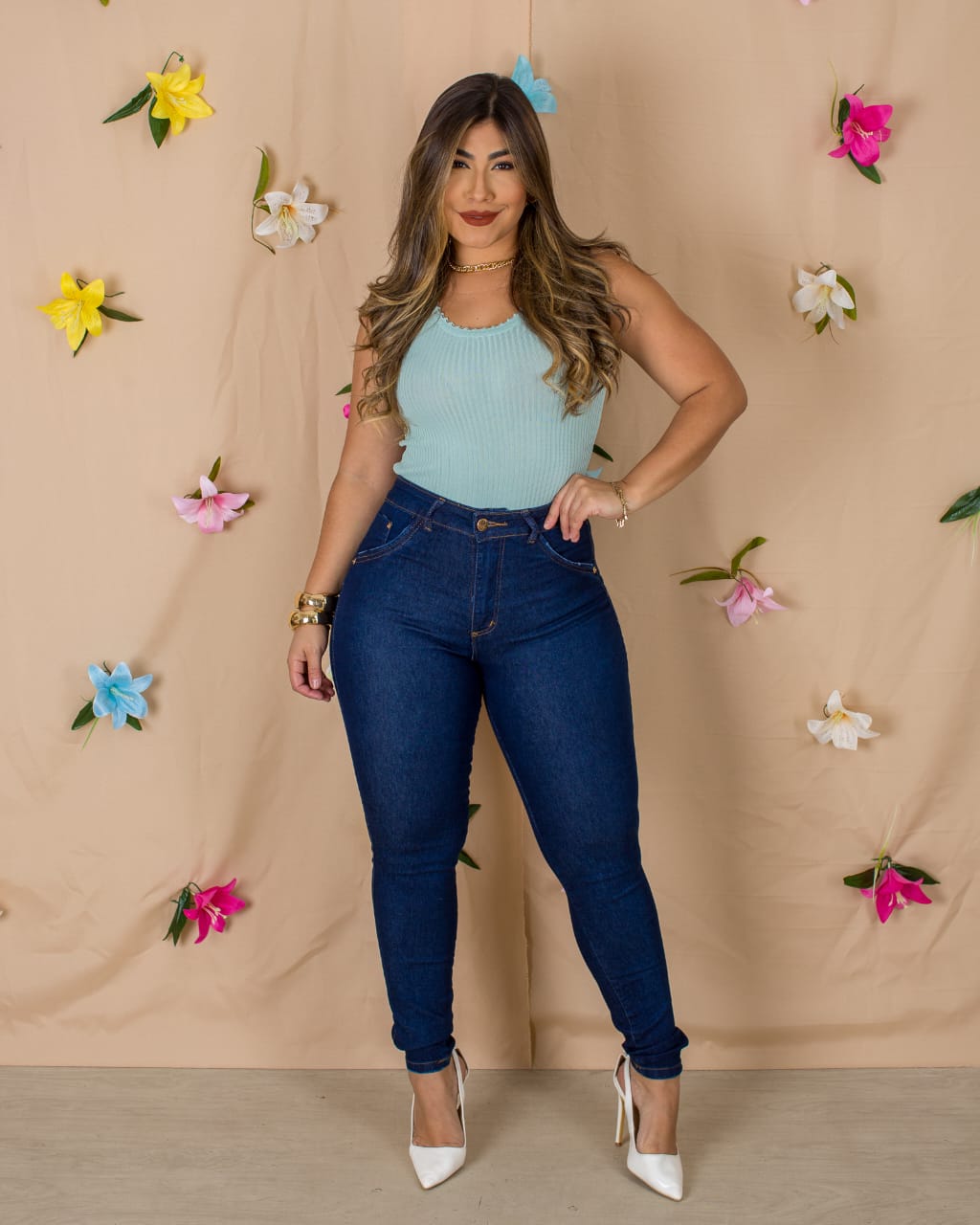 Modelagem skinny com cintura alta que valoriza a forma feminina